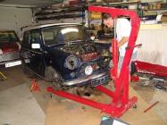 Das Auto war nun bereit für sein Bickerl und die Spureinstellung. Eigentlich - denn wer denkt schon daran, daß man eventuell zu "schmal" sein könnte um sein Fahrwerk einstellen zu lassen, da die Laser nicht nahe genug hinkommen um die Werte richtig zu erfassen... (?!?) Aber glücklicherweise fanden wir eine Werkstatt, die erstens einen Werkstattmeister haben, der selber Minis hatte und gefahren ist UND die passende Vorrichtung für unseren Mini hatten!
