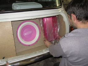 (26.03.2011) Start des Kofferraumausbaues! Irgendwie bricht mir das Herz, wenn ich daran denke, daß wir das nach der Messe vermutlich wieder alles ausbauen müssen. Aber da das mein Alltagsauto ist und ich damit später wieder den Wochenendeinkauf transportieren muss und meine Rücksitzbank bereits durch die Subwooferkiste belegt ist, brauche ich den Kofferraum. Oder wir essen zukünftig einfach nur noch soviel wie auf den Beifahrersitz passt ;)
