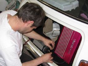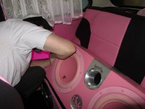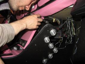 (20.03.2011) So jetzt wird es langsam ernst! Also ab in die Garage und mal langsam planen, wo wir was und vor allem wie von den neuen Teilen verbauen wollen. Immerhin gilt es für 80 neue pinke LED-Lämpchen, einen Verstärker und einen Subwoofer einen neuen Platz zu finden ;)